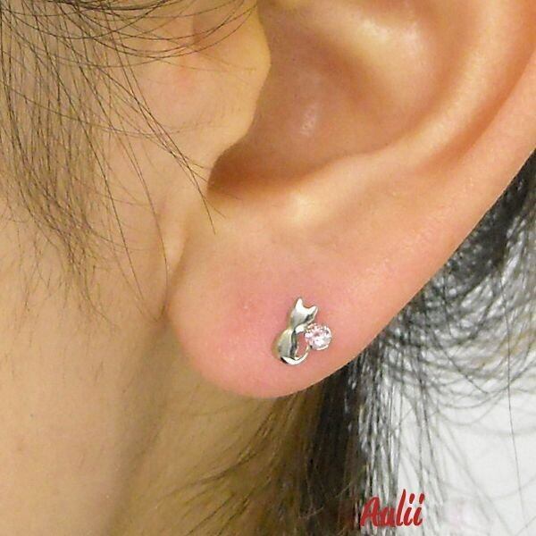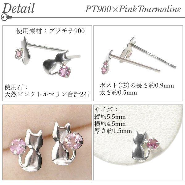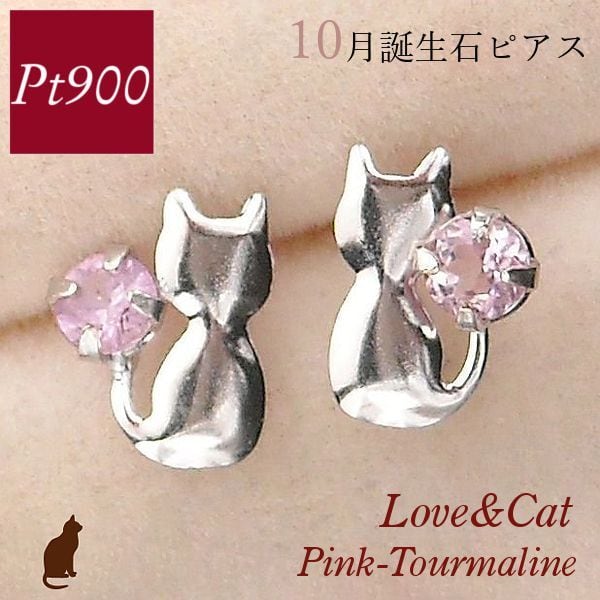 ピンクトルマリン ピアス 10月誕生石 天然石 プラチナ レディース 50代 40代 60代 30代 20代 猫 ねこ ネコ アニマルモチーフ 一粒 pt900 妻 彼女 ギフト プレゼント