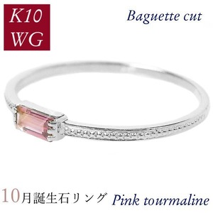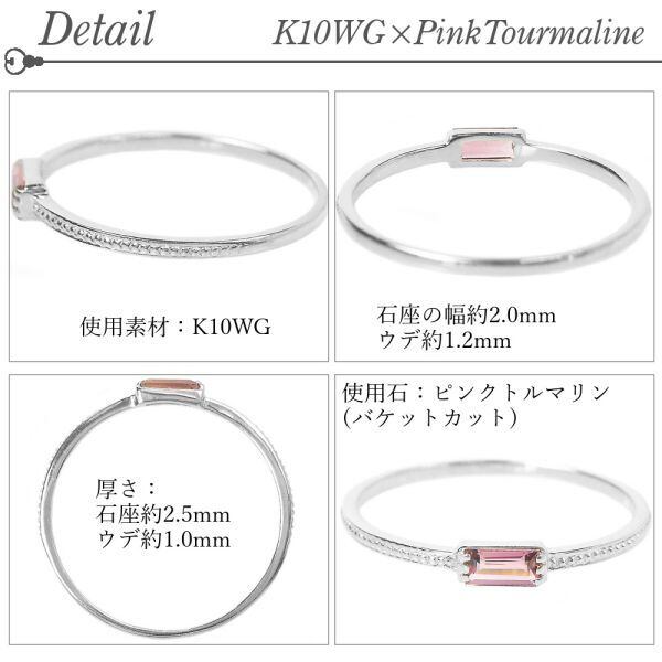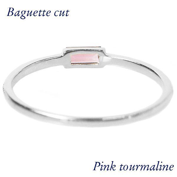 ピンクトルマリン リング 10金ホワイトゴールド k10wg 10月誕生石 天然石 バゲットカット バケット 重ね付け 重ねづけ 華奢 ピンキー 50代 40代 60代 ミル打ち 2×4mm 指輪 レディース 30代 20代 ギフト プレゼント 女性用