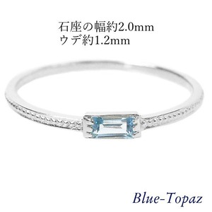 ブルートパーズ リング 10金ホワイトゴールド k10wg 11月誕生石 天然石 バゲットカット バケット 重ね付け 重ねづけ 華奢 ピンキー 50代 40代 60代 ミル打ち 2×4mm 指輪 レディース 30代 20代 ギフト プレゼント 女性用