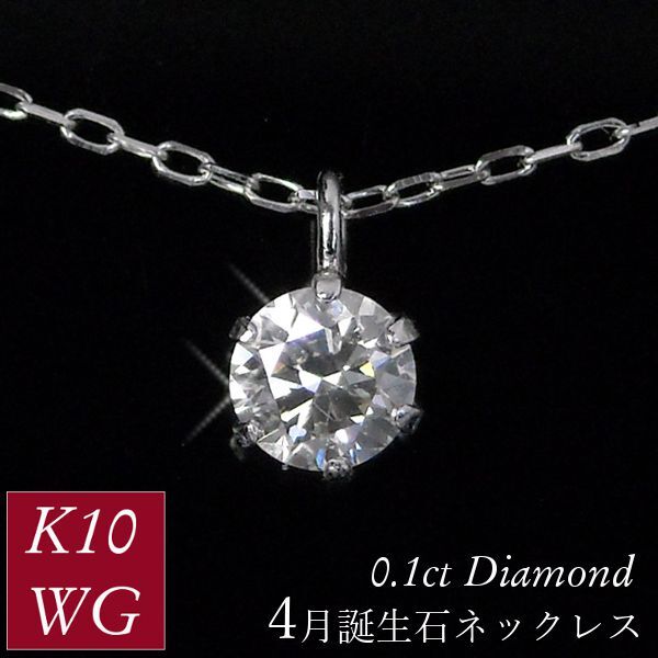 ダイヤモンド ネックレス 一粒 0.1ct 0.1カラット 4月誕生石 天然石 k10wg スキンジュエリー レディース 50代 40代 60代 30代 20代 k10wg シンプル 10金ホワイトゴールド 妻 彼女 ギフト プレゼント 女性用 ペンダント ソリティア 6本爪