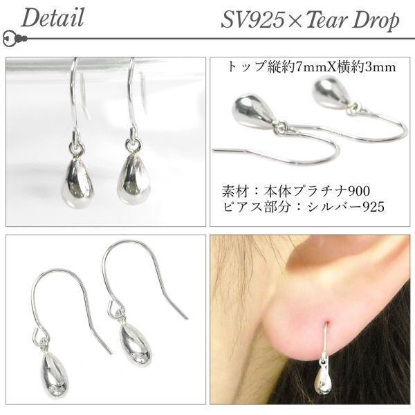 プラチナ ティアドロップピアス