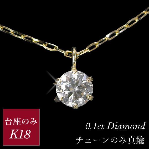 ダイヤモンド ネックレス 一粒 台座のみk18 真鍮 18金ゴールド 18k 4月誕生石 0.1ct 0.1カラット スキンジュエリー 6本爪 レディース 50代 40代 60代 30代 20代 あずきチェーン 妻 彼女 ギフト プレゼント クリスマス ホワイトデー 母の日