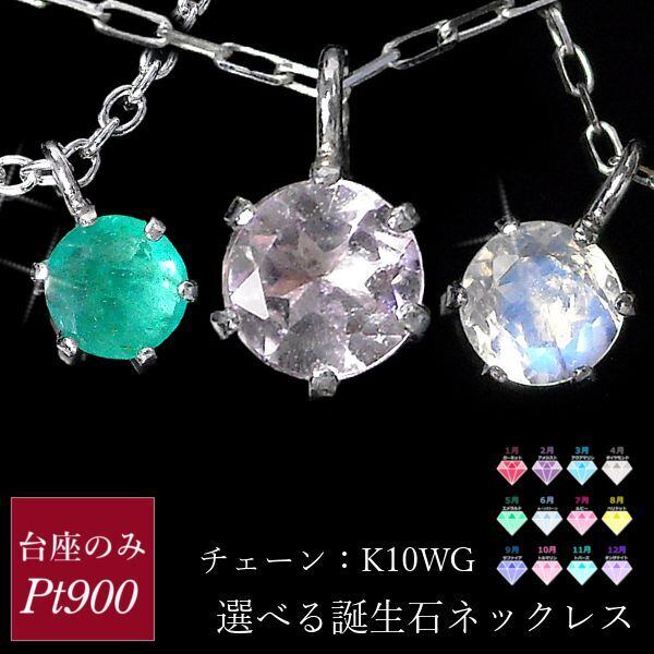 ネックレス サファイア エメラルド ルビー ピンクトルマリン タンザナイト ガーネット アメジスト アクアマリン ジルコニア ムーンストーン ペリドット ブルートパーズ 台座のみプラチナ pt900 チェーン10金ホワイトゴールド k10wg 天然石 スキンジュエリー 12月誕生石