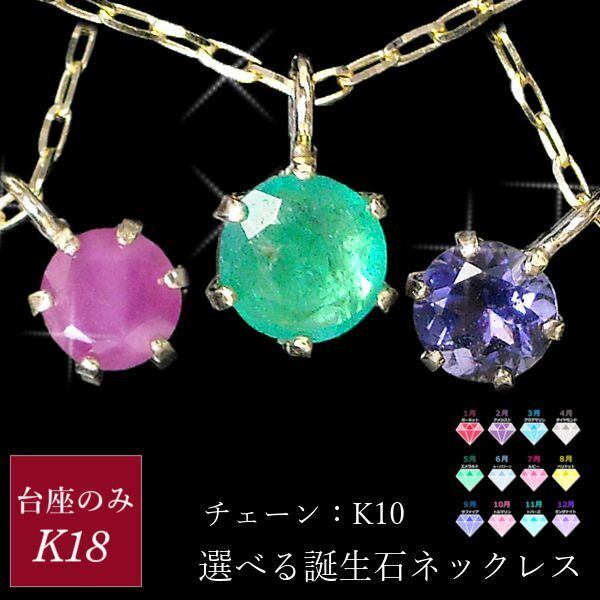 ネックレス サファイア エメラルド ルビー ピンクトルマリン タンザナイト ガーネット アメジスト アクアマリン ジルコニア ムーンストーン ペリドット ブルートパーズ 台座のみ18金ゴールド k18 18k チェーン10k 10k 天然石 スキンジュエリー 12月誕生石 ギフト ペンダント