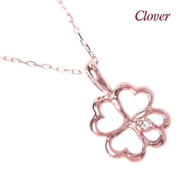 ダイヤモンド ネックレス 一粒 クローバー 4月誕生石 天然石 四つ葉モチーフ k10pg 10金ピンクゴールド レディース 50代 40代 60代 30代 20代 妻 彼女 ギフト プレゼント 女性用