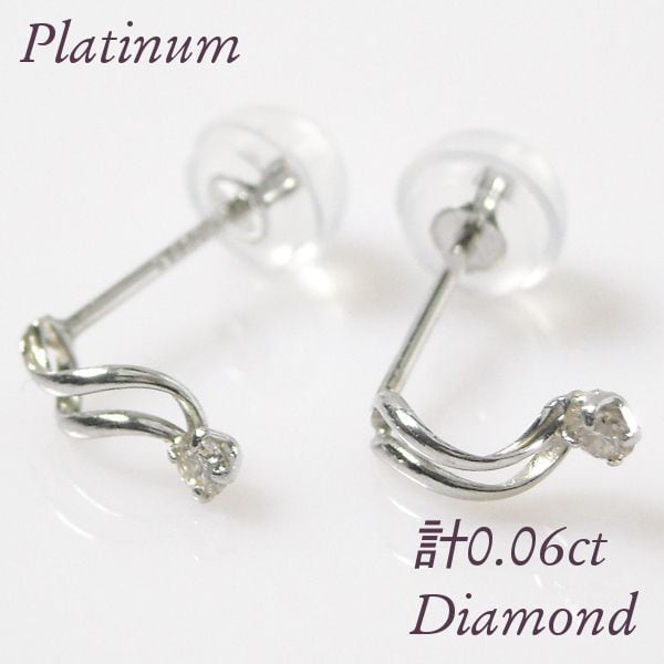 ピアス ひねり ウェーブ 天然ダイヤモンド 一粒 プラチナ 4月誕生石 レディース 50代 40代 60代 30代 20代 シンプル カーヴ 計0.06ct 計0.06カラット 妻 彼女 ギフト プレゼント 女性用 pt900 両耳