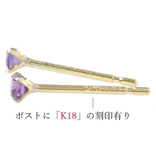 アメジスト ピアス 18k k18 2月誕生石 天然石 18金ゴールド レディース 50代 40代 60代 30代 20代 小さい 小さめ 一粒 4本爪 シンプル 妻 彼女 ギフト プレゼント 女性用