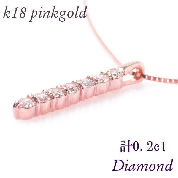 ダイヤモンド ラインネックレス 縦ラインストーン k18pg 18金ピンクゴールド レディース 50代 40代 60代 30代 20代 ペンダント 計0.2ct 4月誕生石 妻 彼女 ギフト 女性用