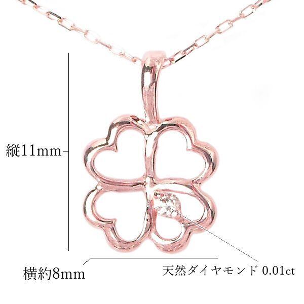ダイヤモンド ネックレス 一粒 クローバー 4月誕生石 天然石 四つ葉モチーフ k18pg 18金ピンクゴールド レディース 50代 40代 60代 30代 20代 妻 彼女 ギフト プレゼント 女性用