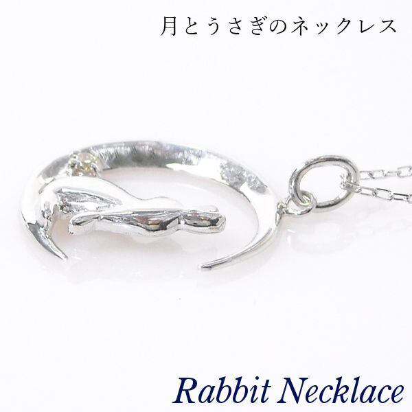 ネックレス うさぎモチーフ プラチナ 天然ダイヤモンド 一粒 ウサギ 4月誕生石 天然石 月 ムーン レディース 50代 40代 60代 30代 20代 アニマル pt900 pt850 妻 彼女 ギフト プレゼント 女性用