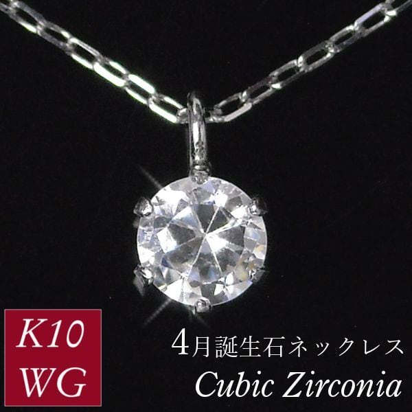 キュービックジルコニア ネックレス 10金ホワイトゴールド czダイヤモンド k10wg レディース 50代 40代 60代 30代 20代 スキンジュエリー シンプル 4月誕生石 妻 彼女 ギフト プレゼント 女性用 ペンダント 母の日 クリスマス ホワイトデー バレンタイン