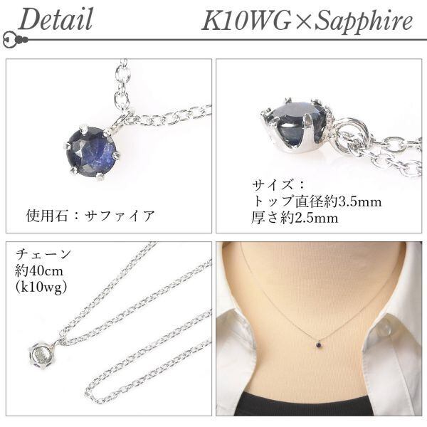 サファイア ネックレス 10金ホワイトゴールド レディース 50代 40代 60代 30代 20代 天然石 k10wg シンプル 9月誕生石 スキンジュエリー 妻 彼女 ギフト プレゼント 女性用 ペンダント 母の日 クリスマス ホワイトデー バレンタイン