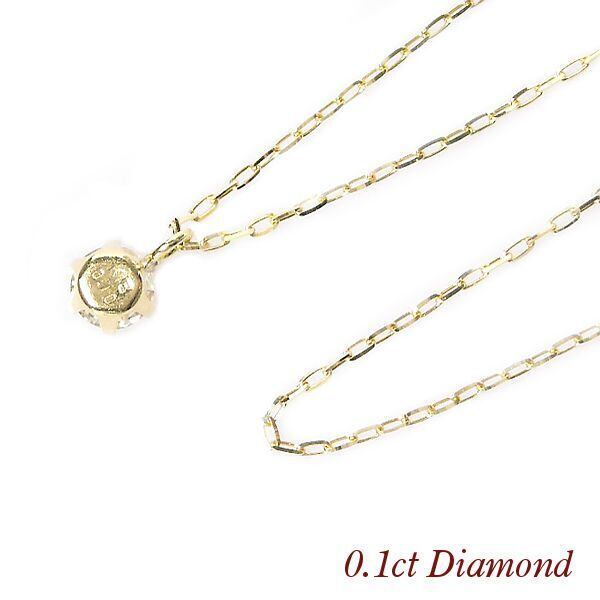 ダイヤモンド ネックレス 一粒 k10 10金ゴールド 10k 4月誕生石 0.1ct 0.1カラット スキンジュエリー 6本爪 レディース 50代 40代 60代 30代 20代 あずきチェーン 妻 彼女 ギフト プレゼント