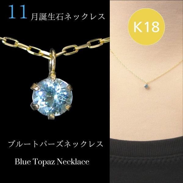 ブルートパーズ ネックレス k18 18金ゴールド 18k レディース 50代 40代 60代 30代 20代 天然石 シンプル 11月誕生石 スキンジュエリー 妻 彼女 ギフト プレゼント 女性用 ペンダント 母の日 クリスマス ホワイトデー バレンタイン