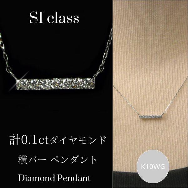 横バー ラインネックレス ダイヤモンド レディース 50代 40代 60代 30代 20代 10金ホワイトゴールド 一文字 k10wg SIクラス 計0.1ct ペンダント クリスマス ホワイトデー 母の日 バレンタイン 妻 彼女 ギフト プレゼント 女性用