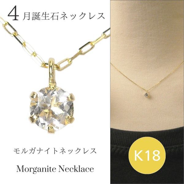 モルガナイト ネックレス 4月誕生石 k18 18金ゴールド 18k レディース 50代 40代 60代 30代 20代 天然石 シンプル 妻 彼女 ギフト プレゼント 女性用 ペンダント 母の日 クリスマス ホワイトデー バレンタイン 敬老の日
